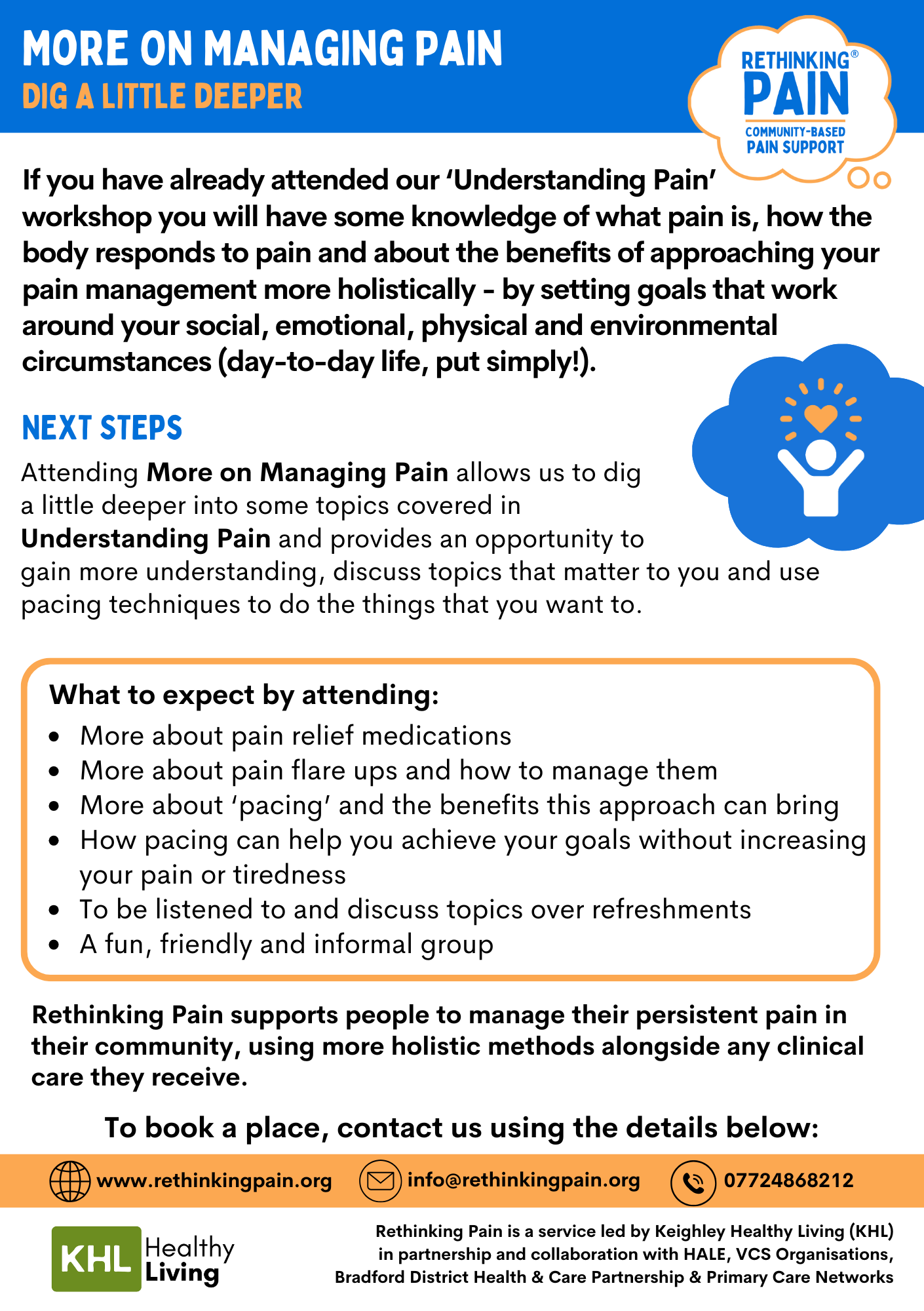 Rethinking Pain is a service led by Keighley Healthy Living (KHL)